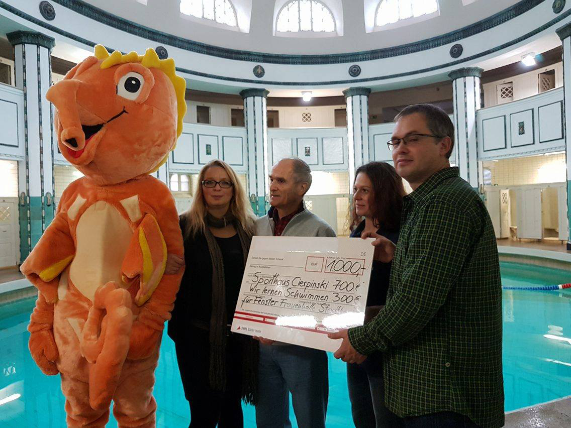 Am 20.10. erfolgte die Scheckübergabe in der Frauenhalle des Stadtbades – mit dabei Waldemar Cierpinski. Wir sagen Danke.