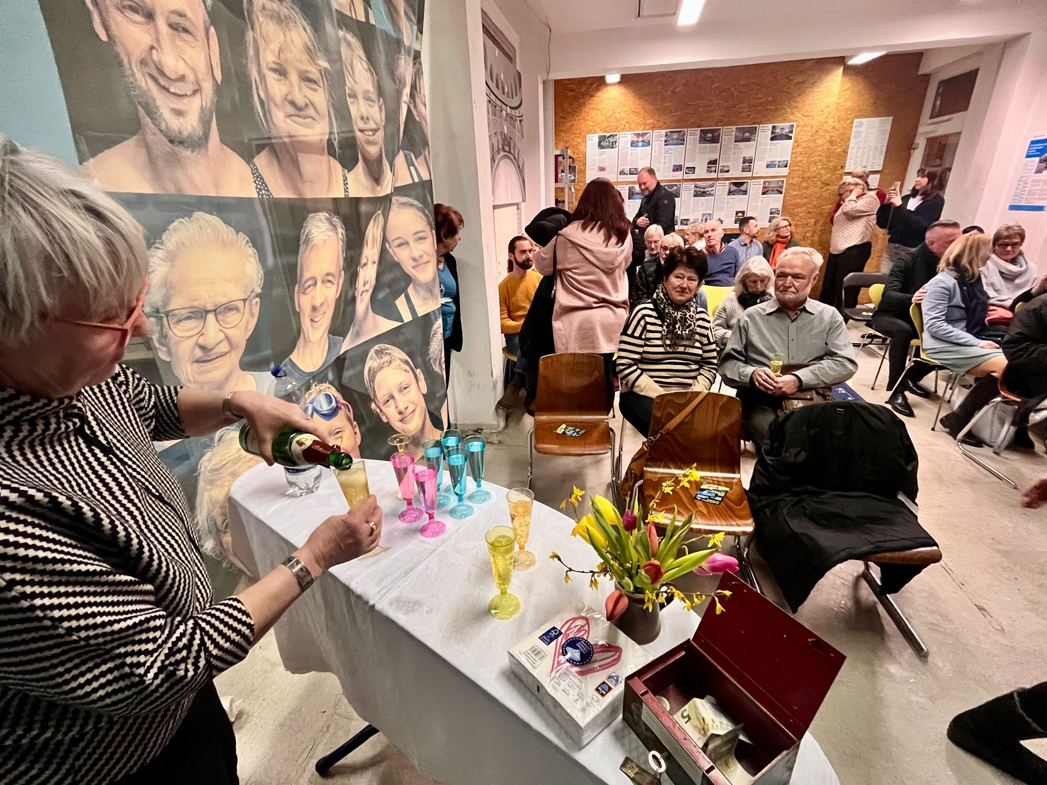 Der zweite Teil des Jubiläumstags fand im STATT‑BAD Halle, dem Ersatzdomizil des Fördervereins, statt. Da im Stadtbad aufgrund der laufenden Teilsanierung derzeit keine Veranstaltungen möglich sind, wurde der Abend in die Schmeerstraße 15 verlegt – und füllte den Raum bis auf den letzten Platz.