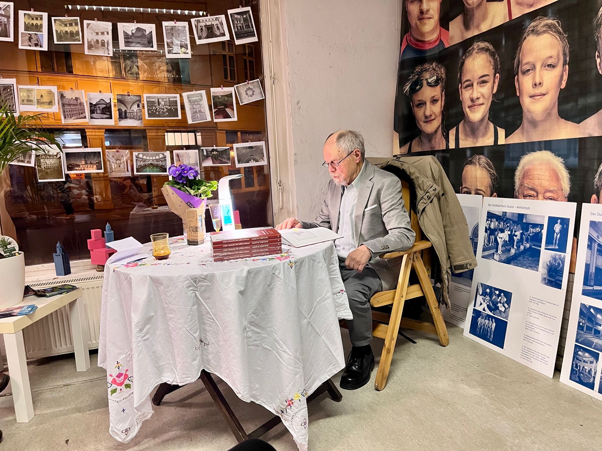 Jost, der seit 1912 als Stadtbaurat das Stadtbild Halle entscheidend prägte, schildert in seinen Aufzeichnungen eindrucksvoll die Entstehungszeit des Stadtbads und seine Vision eines modernen, sozialen und städtebaulich bedeutenden Bauwerks. Die Lesung eröffnete einen seltenen Blick auf die Denkweise eines Mannes, der Halle mit zahlreichen Gebäuden und Anlagen bis heute prägt.