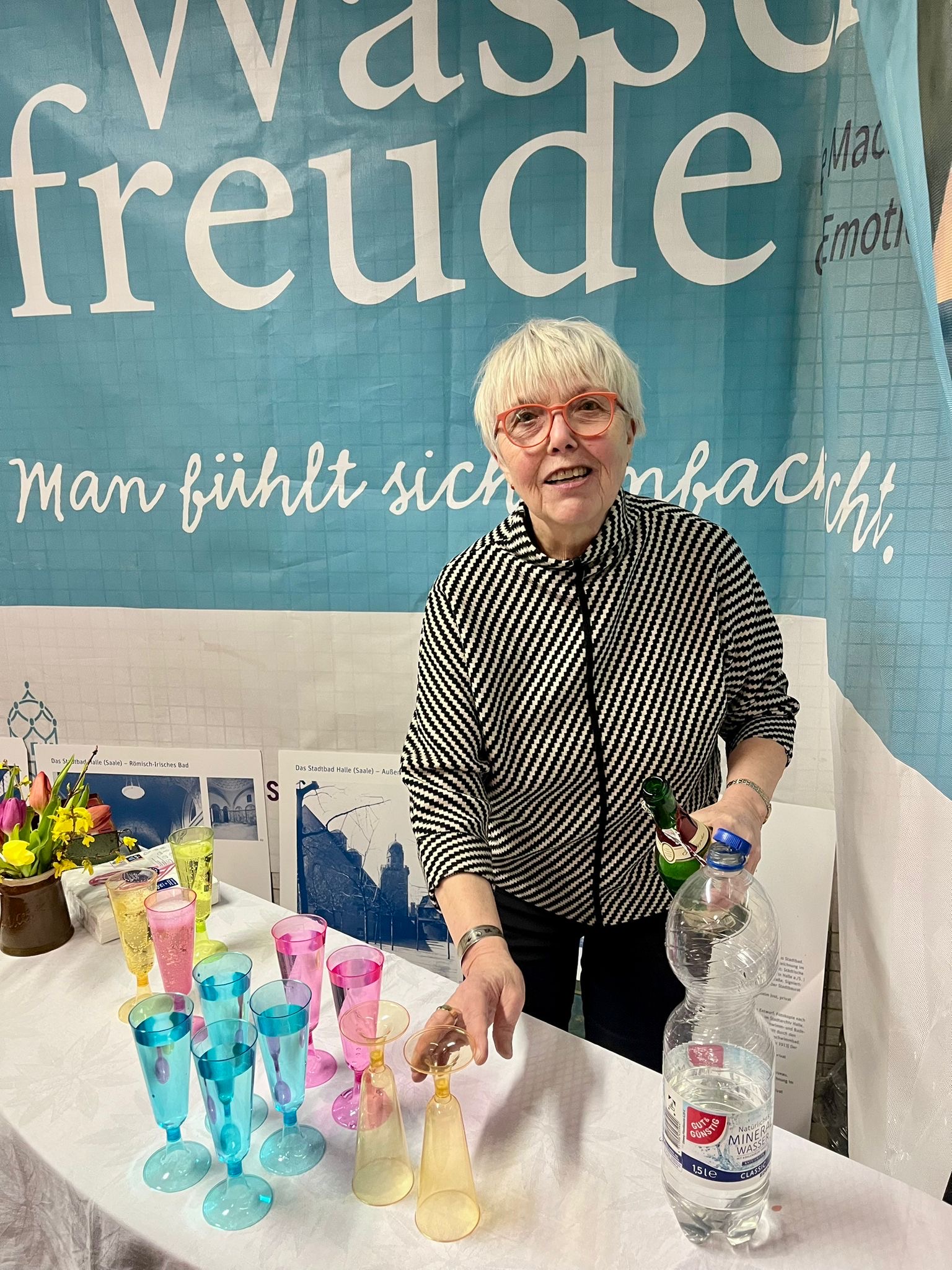 Mit zwei sehr gut besuchten Veranstaltungen hat der Förderverein Zukunft Stadtbad Halle e. V. heute das 110. Jubiläum des historischen Stadtbads gefeiert. Bereits um 17:30 Uhr wurde an der Ecke Große Steinstraße / Schimmelstraße die Jubiläumsmedaille „110 Jahre Stadtbad Halle“ präsentiert – ein Moment, der zahlreiche Unterstützerinnen und Unterstützer des Stadtbads zusammenbrachte.